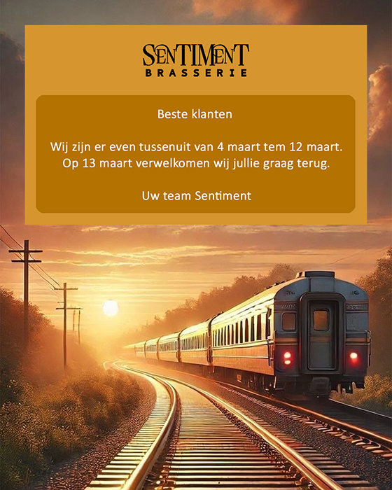 Brasserie Sentiment heet u van harte welkom voor een smakelijke lunch of diner in een gezellige sfeer