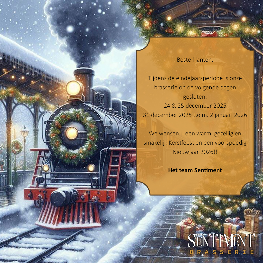 Brasserie Sentiment heet u van harte welkom voor een smakelijke lunch of diner in een gezellige sfeer